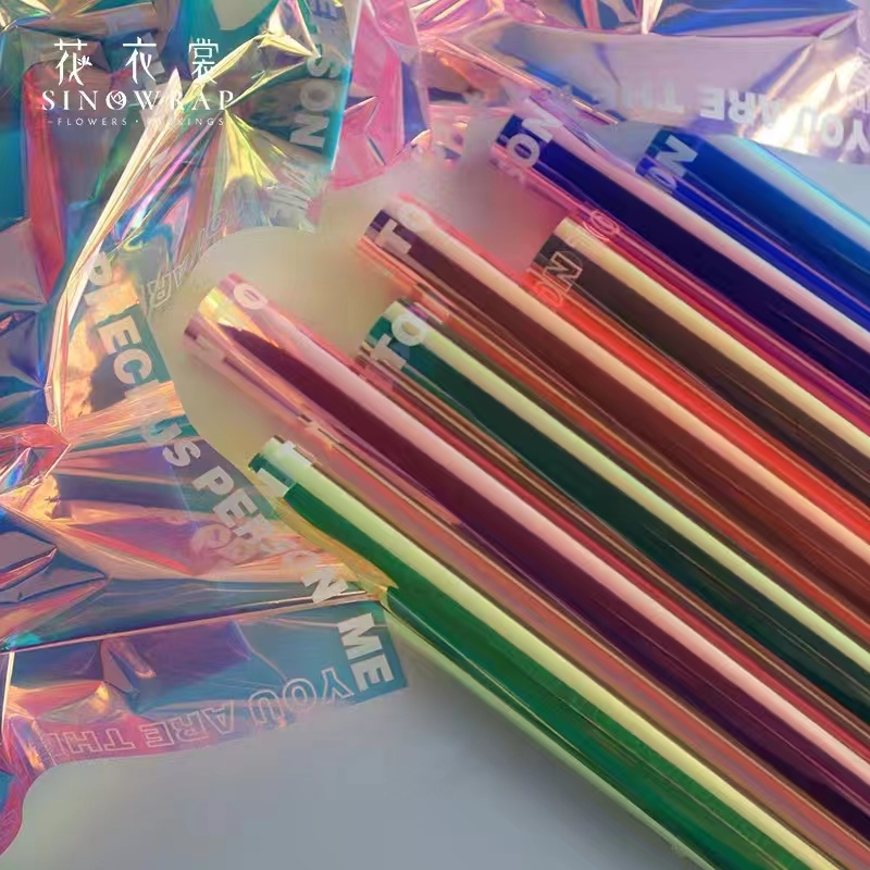 MYSTYLE KERTAS BUNGA HOLOGRAM WARNA DCSJ PLASTIK OPP HOLOGRAPHIC RANBOW FLOWER WRAPPING MURAH 1 PACK