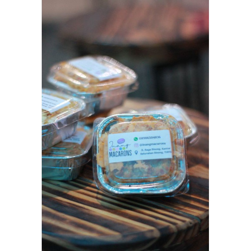 ada dua di varisn rasa Mac cheese original dan spicy tuna. ukuran 110ml dan 250ml sangat mengutamakan kualitas bahan karna mengunakan produk premium. hari ini pesan hari itu dibuat jadi fresh bgt. bisa order untuk acara juga seperti acara kantor, ulangtahun atau wedding bisa sebagai dessert. bisa kunjungi IG kita juga di @inangmacarons