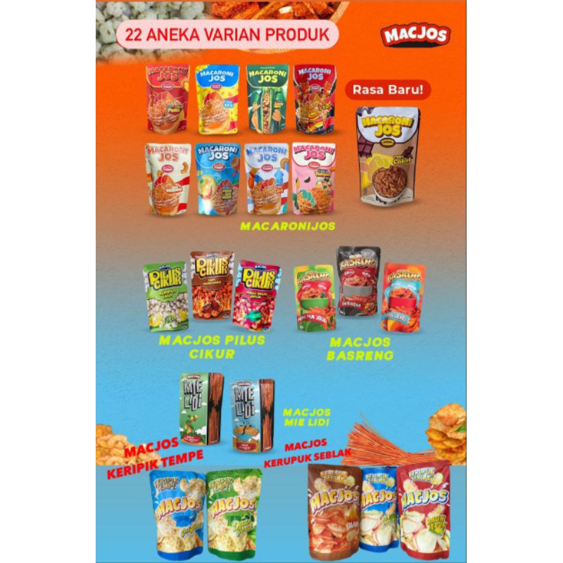 Ada macaroni, ada lidi, ada pilus, ada Basreng, ada Kripik tempe, ada Kerupuk Seblak.