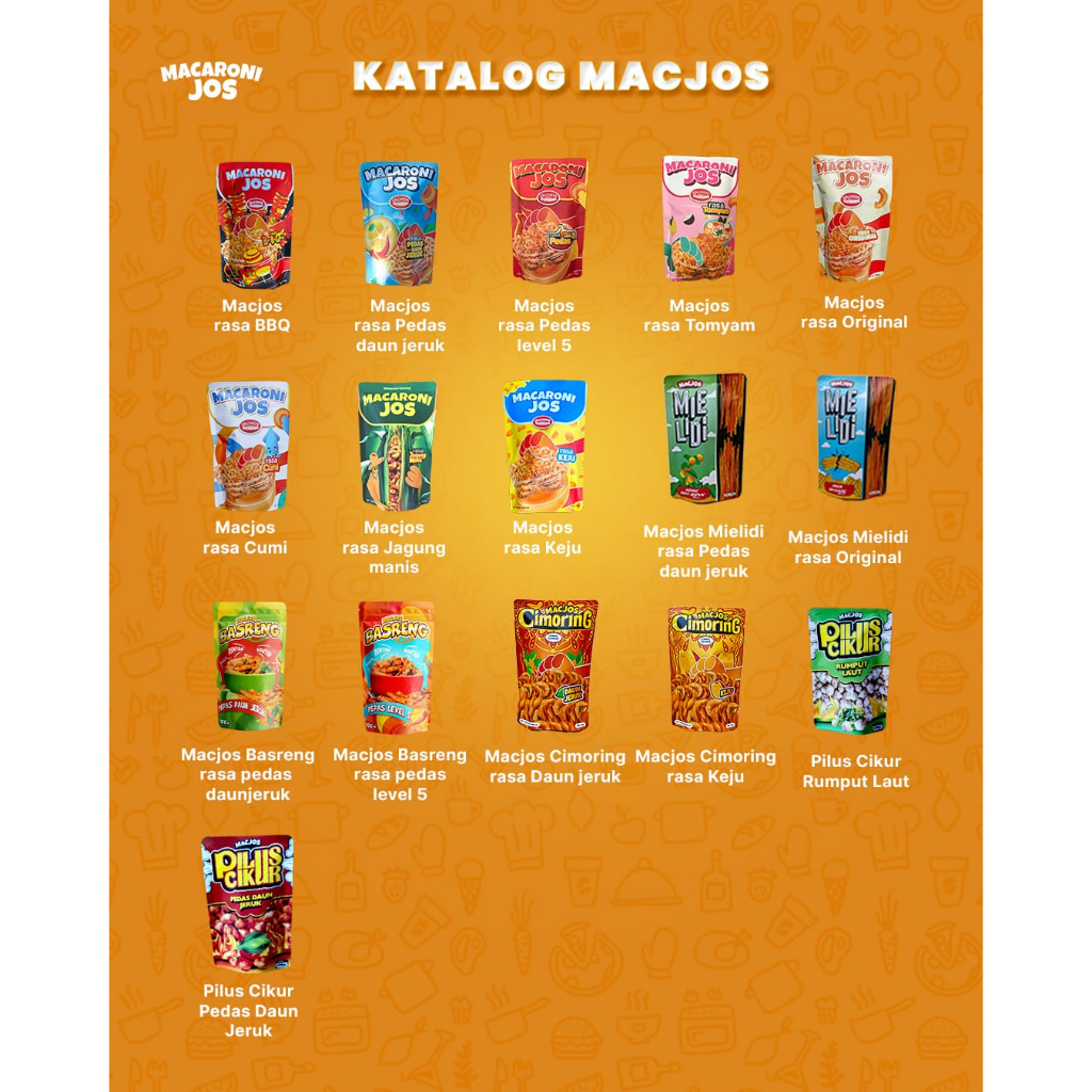 Macjos merupakan snack dengan berbagai variasi yang memiliki berbagai macam rasa dengan packaging premium 100gr.