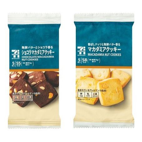 Kue macadamia nut di 7-Eleven biasanya merupakan kue cokelat putih dengan potongan kacang macadamia. Kue ini tersedia dalam berbagai varian, seperti White Chocolate Chip Macadamia Nut Cookie.
