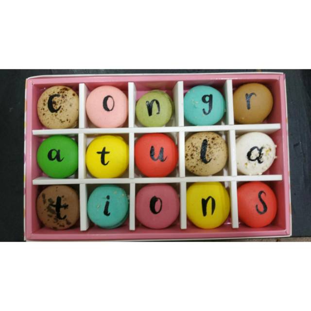 Macaron isi 15 ukuran reguler 4,5cm. Bebas tulis nama/huruf