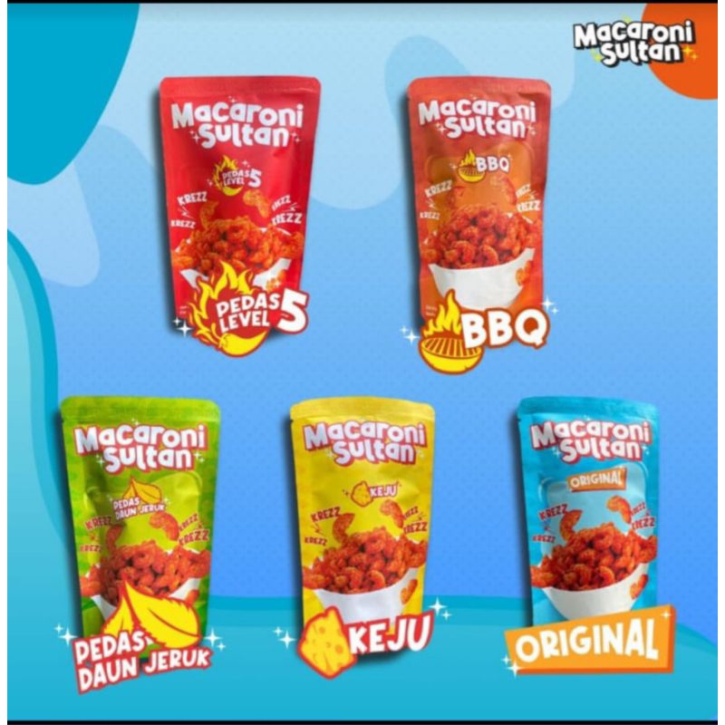 MACSUL(macaroni sultan)adalah camilan yang gurih, sedap, kesukaan anak indonesia. Dengan 5 varian rasa: