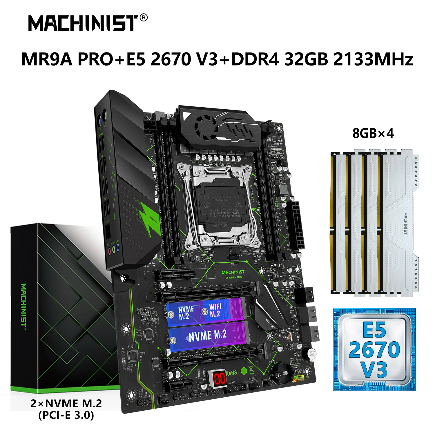 Machinist X99 материнская плата Combo LGA 2011-3 E5 2670 V3 комплект ЦП Xeon DDR4 4 шт. * 8 ГБ = 32 Гб ОЗУ 2133 МГц NVME M.2 четыре канала MR9A PRP
