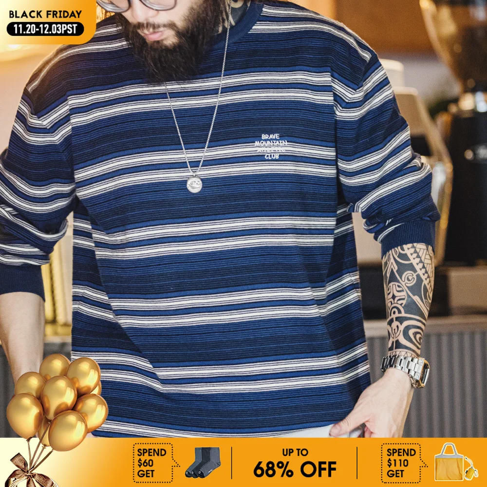 Maden Мужской свитер в полоску с контрастным цветом Округлый вырез длинный рукав футболка Для ношения под одежду весна и осень Комфортная и универсальная трикотажная одежда