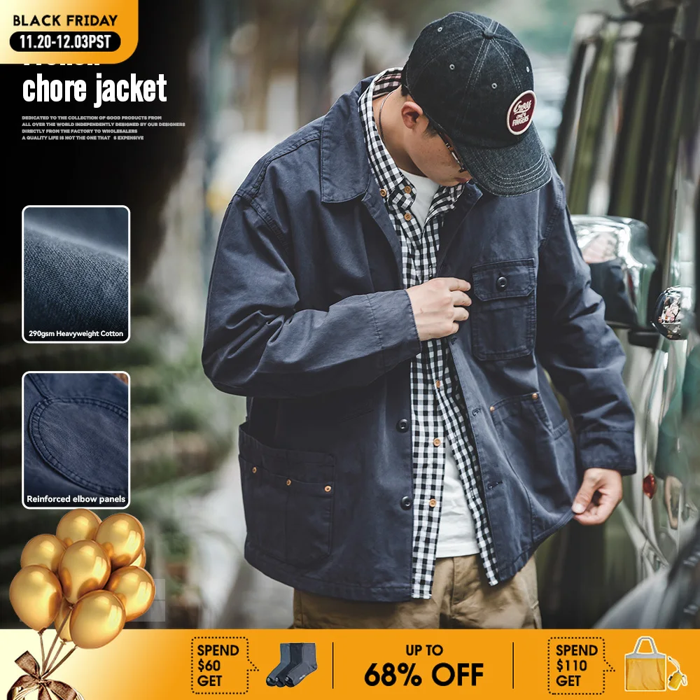 Maden Ретро французская куртка с множеством карманов, темно-синяя, плотная, на пуговицах. Идеальна для мужчин весной и осенью. Удобная и стильная охотничья модель для прохладной погоды