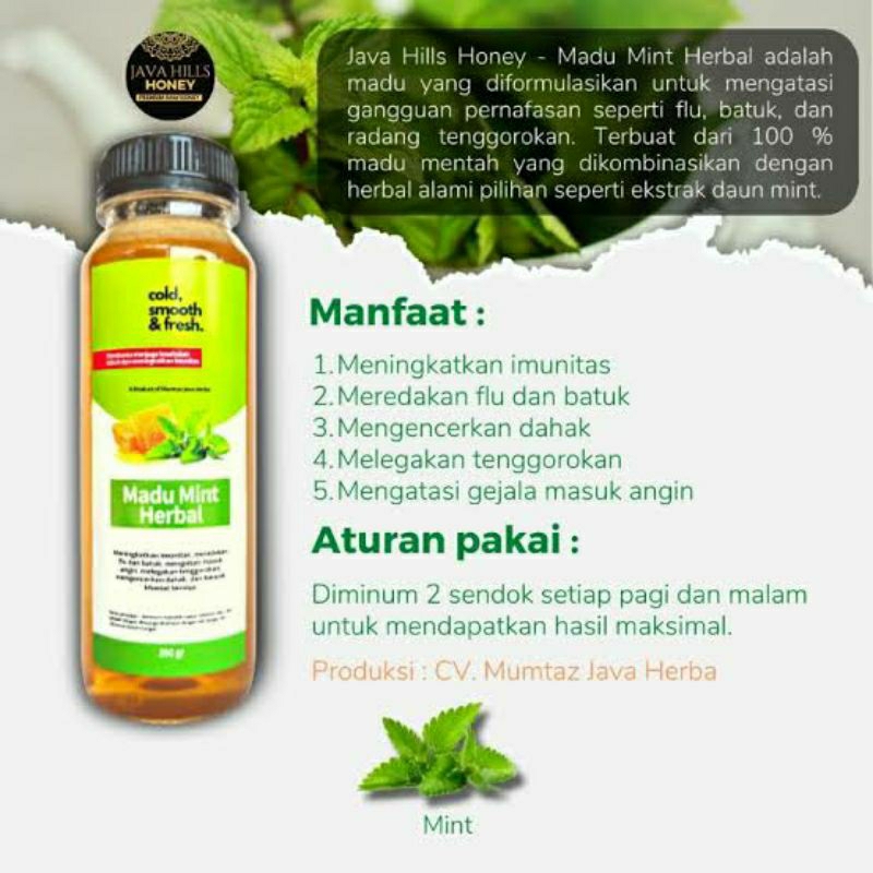 madu herbal untuk mengatasi batuk, pilek, radang dengan sensasi mint.