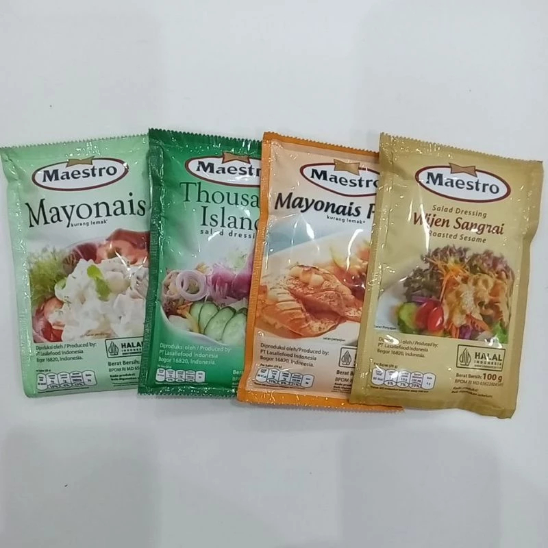 - Mayo Pedas : Maestro mayonais pedas dibuat dari perpaduan mayonais dengan saus sambal nikmat yang menghasilakan mayonais dengan cita rasa pedas yang creamy