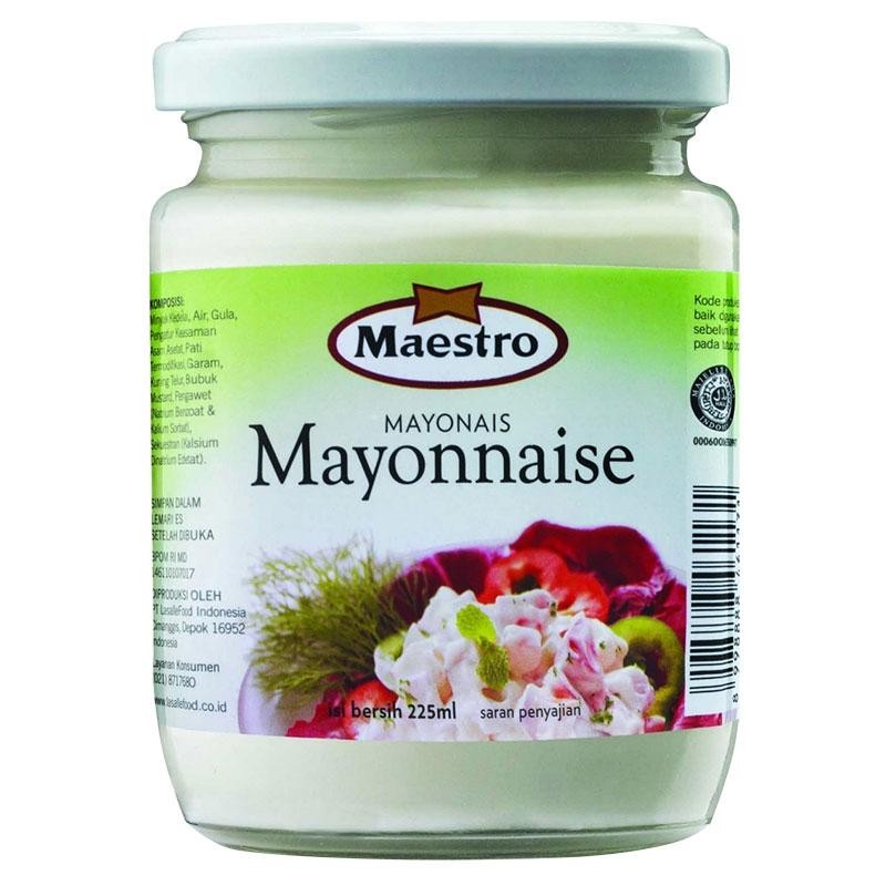 Jadikan makanan lebih lezat dengan Maestro Mayonnaise 225ml . Mayones merupakan salah satu jenis saus yang dibuat dari bahan utama telur ayam, minyak nabati, dan cuka. Mayones dapat digunakan untuk memberikan tambahan rasa gurih pada makanan seperti salad atau lauk pauk. Maestro Mayonnaise 225ml merupakan mayones yang terbuat dari bahan-bahan pilihan. Mayones ini dikemas dalam kemasan praktis isi 225ml. Anda dapat menambahkan mayones Maestro ini ke dalam menu salad atau sebagai cocolan lauk seperti udang, tahu, kentang, dan lain-lain. Sediakan Maestro Mayonnaise 225ml ini sebagai pelengkap menu spesial Anda.
