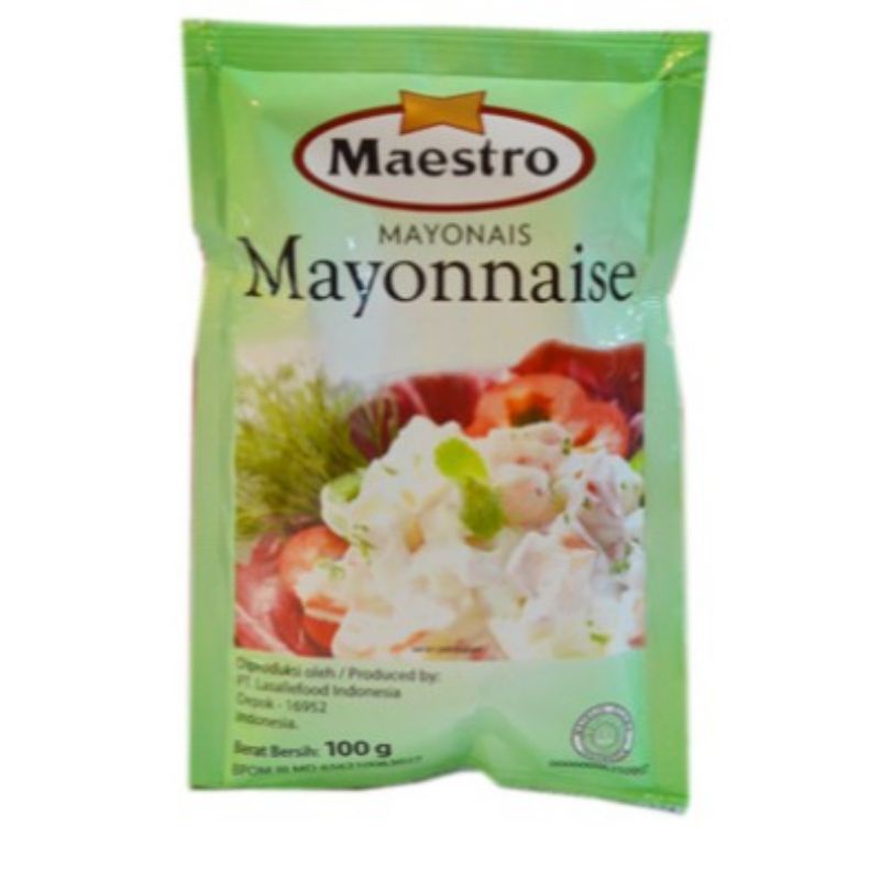 Maestro Mayonnaise Sachet 100g merupakan mayones yang terbuat dari bahan-bahan pilihan. Mayones ini dikemas dalam kemasan sachet praktis isi 100g. Anda dapat menambahkan mayones Maestro ini ke dalam menu salad atau sebagai cocolan lauk seperti udang, tahu, kentang, dan lain-lain. Sediakan Maestro Mayonnaise Sachet 100g ini sebagai pelengkap menu spesial Anda.