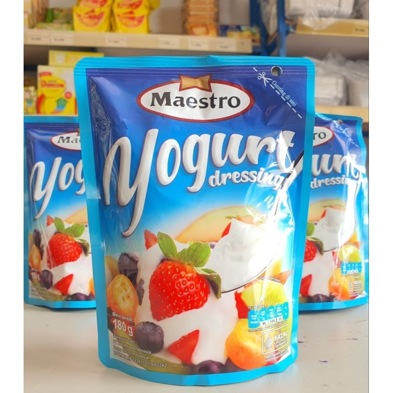 Maestro Yoghurt Dressing kemasan 180 gr ini dibuat dengan bahan berkualitas, untuk menjadi solusi praktis dan menambahkan kelezatan berbagai sajian. Dapat langsung dicampur dengan buah atau sajian lainnya tanpa perlu menambahkan yoghurt, kental manis, atau mayonaise