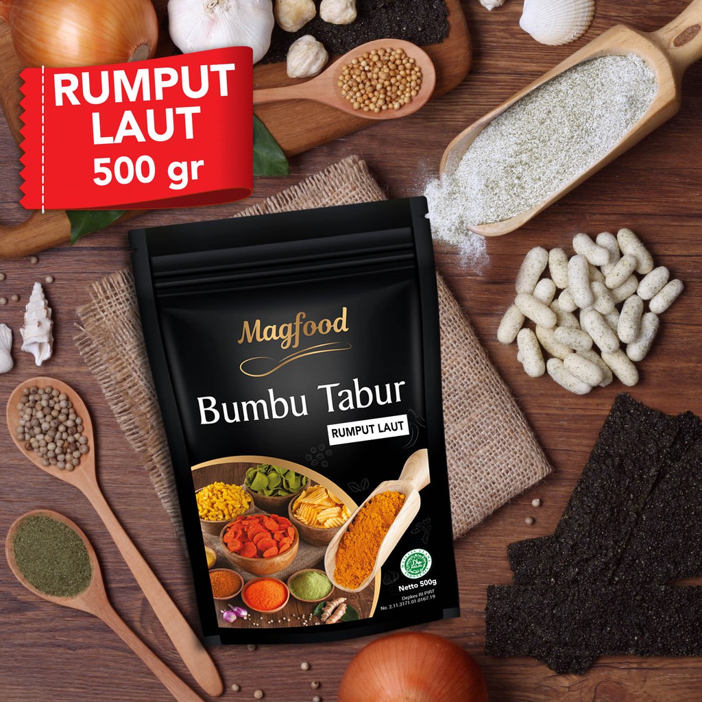 Bumbu tabur rumput laut tanpa penguat rasa dan tanpa bahan pengawet. Bumbu tabur rumput laut merupakan bumbu dengan rasa khas rumput laut yang unik. Dipadukan dengan berbagai bumbu kaya rasa. Rasa gurih pada bumbu ini berasal dari bubuk rumput laut, berbagai rempah serta perpaduan bumbu lainnya. Memiliki warna putih dengan bintik hijau dari bubuk rumput laut. Cocok disajikan dengan berbagai makanan seperti kentang goreng, ayam goreng, dan berbagai jenis snack lainnya.