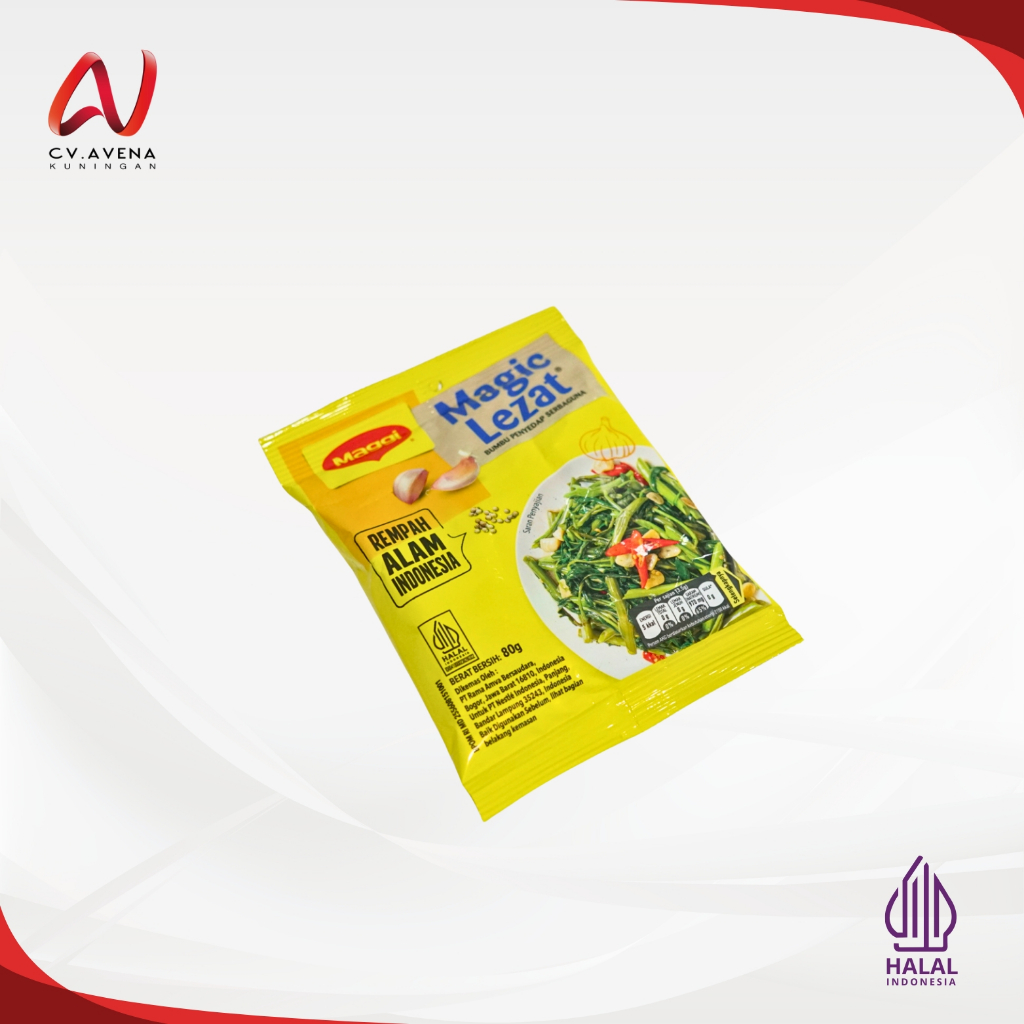MAGGI Magic Lezat adalah bumbu penyedap serbaguna yang dirancang untuk memperkaya rasa masakan tanpa menghilangkan rasa aslinya. Bumbu ini mengandung rempah-rempah alami dan ekstrak ayam, yang dikemas dalam bentuk granul untuk menjaga kesegaran rasa. MAGGI Magic Lezat cocok untuk berbagai jenis masakan, baik tumisan, kuah, gorengan, maupun kukusan.