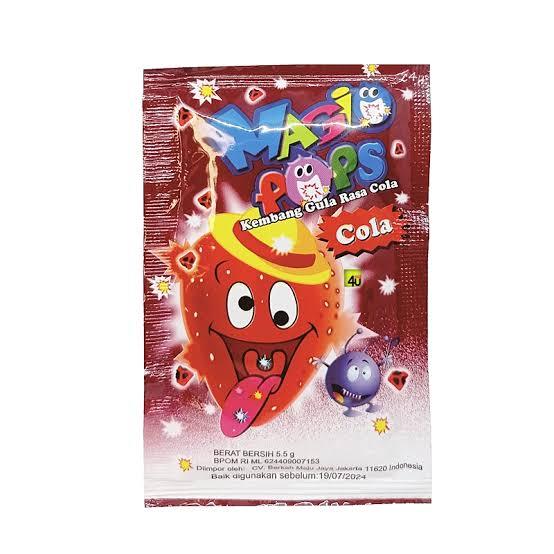 Magic pops cola 5,5 gr adalah Permen Jadul Bentuk Permen Lolipop dengan Remah Remah Permen Popping yang bisa meletus letus di lidah. Dilengkapi dengan stick permen bentuk kaki yang bisa dipakai untuk dipping ( celupan ).
