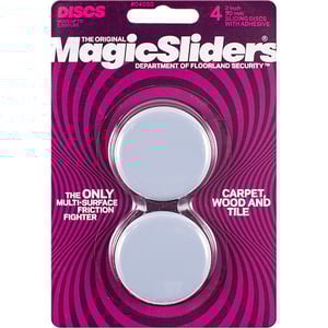 2 inch round 4-pack sliders for medium-to-large sized round legged furniture. Easy installation using included double sided adhesive tape. Magic Sliders high quality products use a proprietary high tech polymer coating that all but eliminates friction and protects your floors on all kinds of surfaces. Use on wood, vinyl, tile and even carpet! Protect your floors and make chores like painting, cleaning or redecorating a breeze.