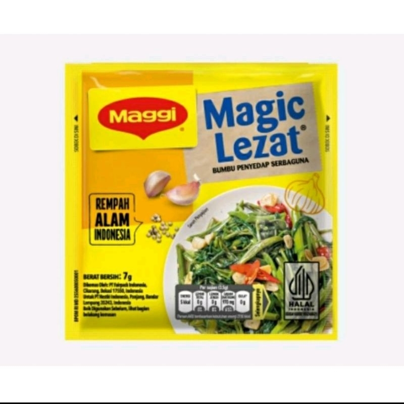 Bumbu penyedap serbaguna. 1 renceng 12 sachet. Harga per renceng. Maggi Magic Lezat sachet 60(12x7g)