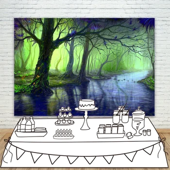 Magical Forest Photo Background Fairy Tale Magic Big Tree River Princess Girl Birthday Party Decorations Banner Backdrops