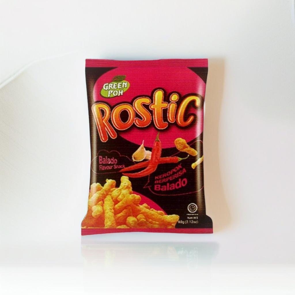 Rostic Balado Makanan Ringan dengan bumbu rasa sambal balado yang pedas nikmat sehingga dijamin akan membuat kamu ketagihan setelah mencobanya.