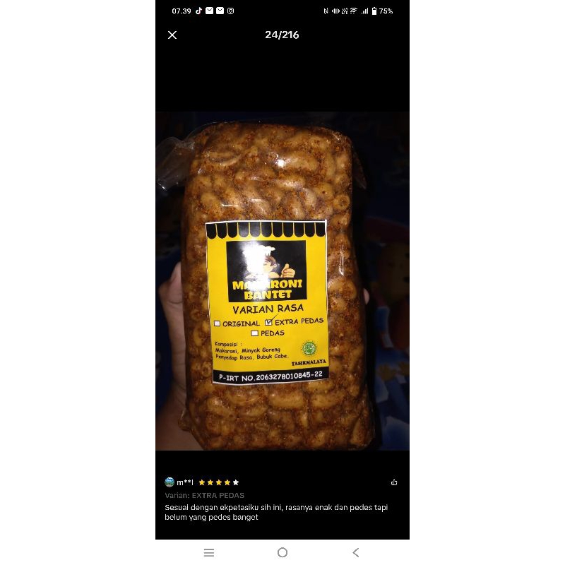 Makaroni bantet varian rasa ekstra pedas. Rasa nya yang pedas ditambah gurih ciri khas makaroni bantet menambah cita rasa pada lidah anda. Berat Perkemasan 500 gr.