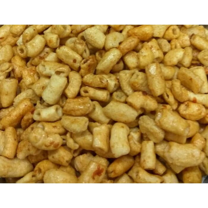 Makaroni goreng yg dibumbui dengan bumbu rujak, garing, pedas manis.