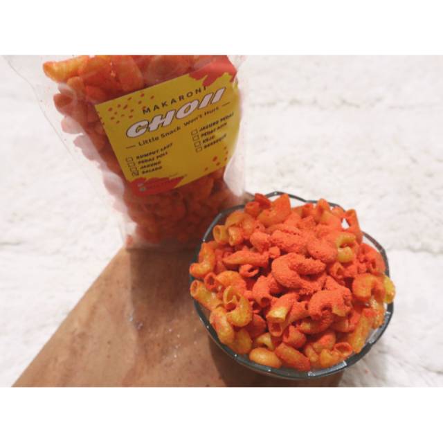 Makaroni choii rasa balado yang lebih dominan dengan rasa pedas, manis, gurih dan sedikit rasa asam. digoreng dengan minyak berkualitas sehingga aman untuk dikonsumsi oleh semua umur,disajikan dengan warna merah pedas khas balado dengan berat 75gr.