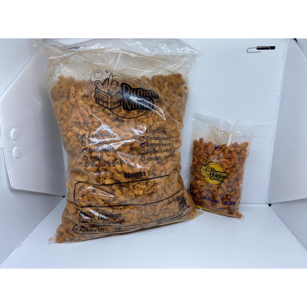 Makaroni Kering yang dibungkus dengan ukuran jumbo. 10X ukuran biasa. Cocok untuk makan rame-rame dengan keluarga dan teman-teman