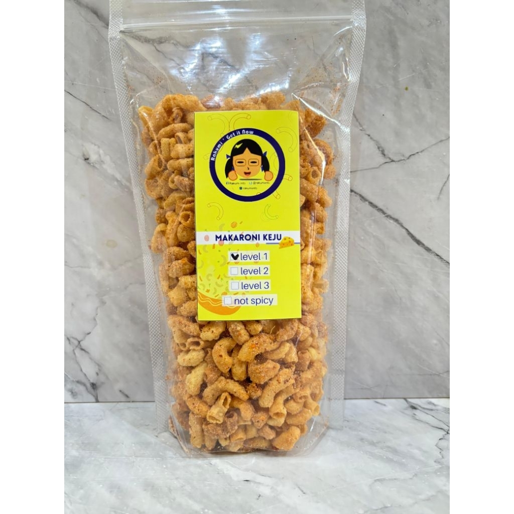 Makaroni Rasa Keju ini memiliki berat 200 gram. Terdapat berbagai level pedas, dari yang tidak pedas sampai yang suka pedas. Pastikan untuk memilih produk ini dengan tingkatan level pedas atau not spicy