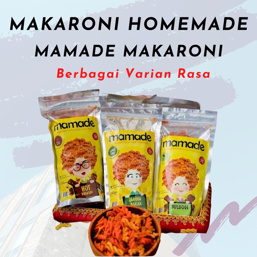 Makaroni homemade "MAMADE" merupakan snack homemade asal Jakarta yang mulanya dibuat dari resep rahasia dengan menggunakan bahan-bahan yang aman bagi kesehatan dan dibuat dengan sedemikian rupa untuk memastikan kepuasan anda.