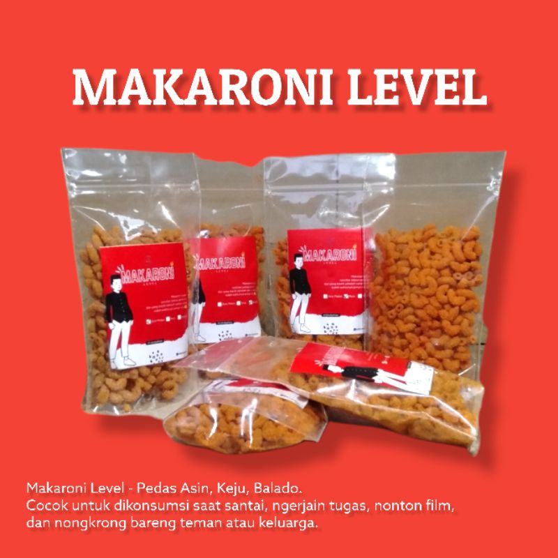 Makaroni Level - Pedas Asin cocok untuk dikonsumsi saat santai, ngerjain tugas, nonton film, dan nongkrong bareng teman atau keluarga. Sensasi pedas Makaroni Level siap menggoyangkan lidah anda. Rasanya bikin kangen.