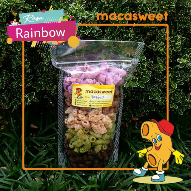 Kamu mau makanan yang rasanya itu HITS banget ? Makanan anak Jaman now ? Terus kamu lagi galau, badmood, bete ? Butuh yang manis manis buat menghilangkan badmood mu ? Nah ini diaa macasweet rasa Rainbow dilumuri coklat asliii~ dijamin ENAK, MANTAP dan BAKAL KETAGIHAN !!