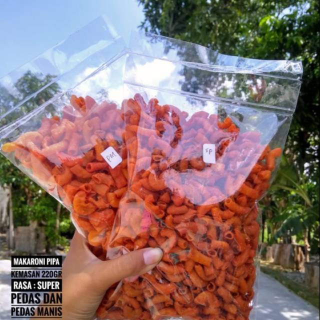 Makaronii pipa ada 2 varian rasa pedas dan pedas manis,,