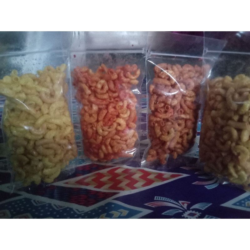 Macam2 snak..cocok nemenin di saat santai . Ada: makroni,kripik pangsit dll