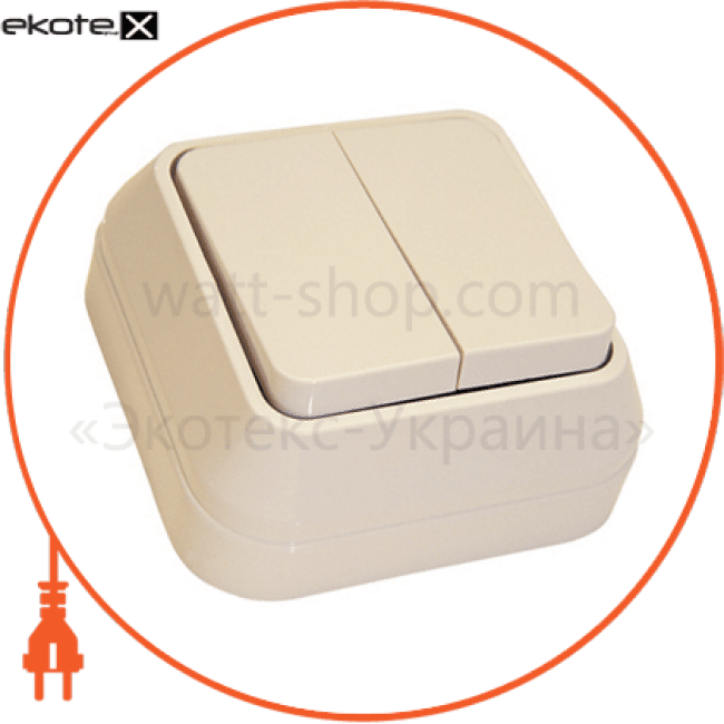 Наименование: Вимикач 2-клавішнийАртикул: 45203Серия: Наружная серияЦвет: кремовый