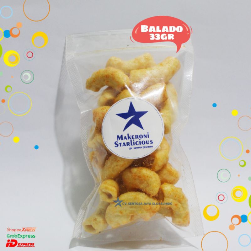 Makaroni balado merupakan Product umkm dari star official camilan yang terbuat dari tepung dengan bentuk bermacam-macam. Ada yang berbentuk ulir, ada juga yang berbentuk panjang berongga. Sedangkan untuk makaroni balado ialah makaroni yang ditaburi dengan bubuk balado pedas.