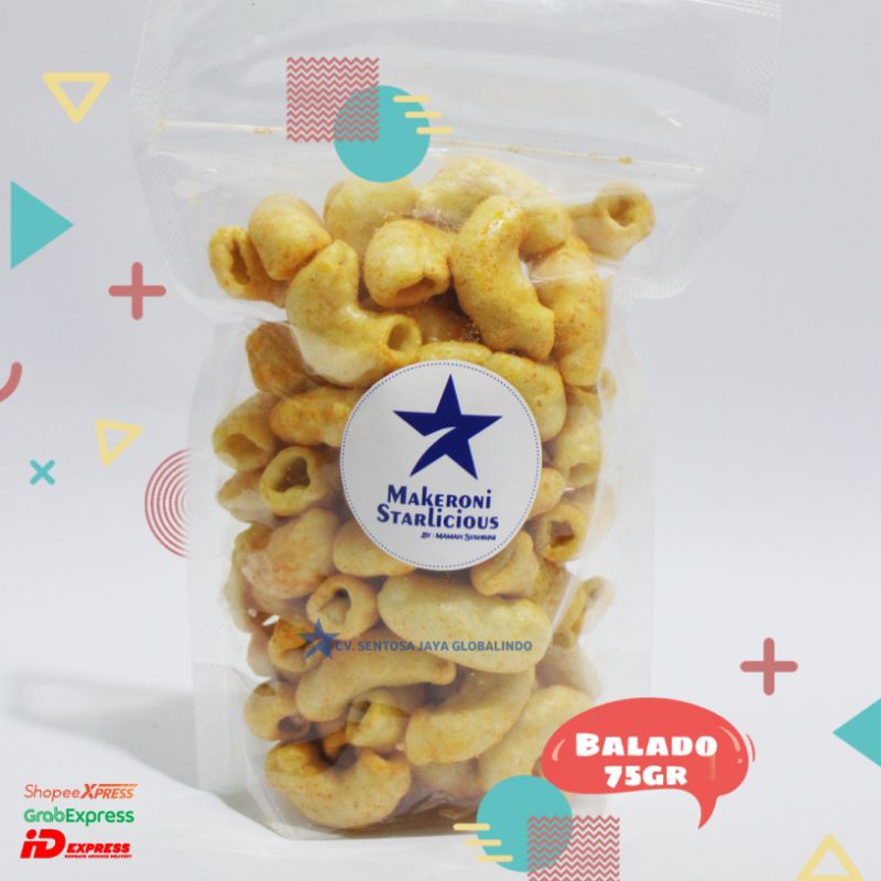 Makaroni balado merupakan Product umkm dari star official cemilan yang terbuat dari tepung dengan bentuk bermacam-macam. Ada yang berbentuk ulir, ada juga yang berbentuk panjang berongga. Sedangkan untuk makaroni balado ialah makaroni yang ditaburi dengan bubuk balado pedas.