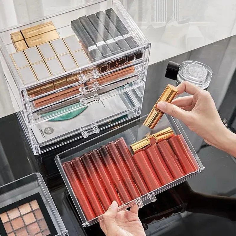 Makeup Storage Box Acrylic Transparent - Drawer Divided Style Organizer, Large Capacity, Desktop Compact Dust-proof
