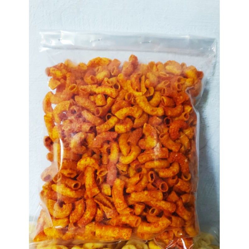 makroni, bubuk cabai, penyedap rasa