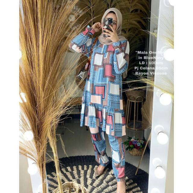 Daily set ini mempunyai cutting super cantik, bagian pinggang ada rumple lipitnya bikin dress ini terlihat slim dan jenjang.