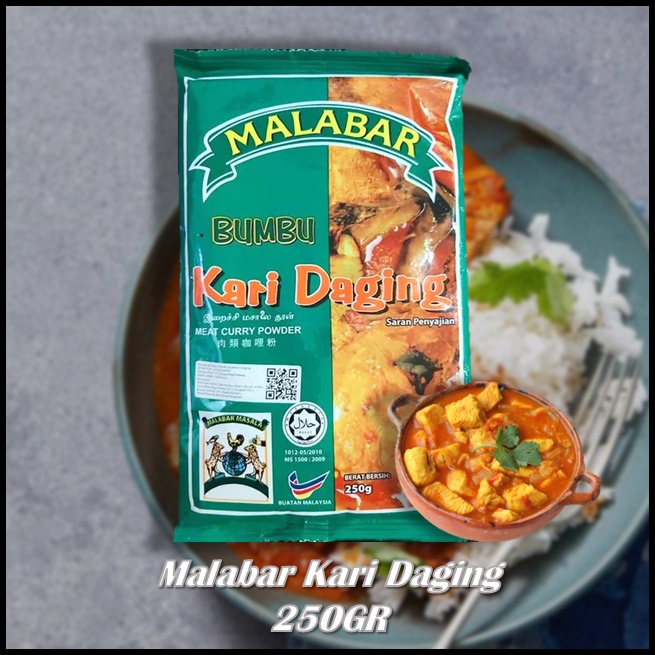 Malabar Kari Daging merupakan bumbu kari instant yang berkualitas tinggi dan di produksi dengan bahan bahan alami,memiliki ciri khas rasa kari yang wangi dan lezat.cocok buat masakan kari DLL.