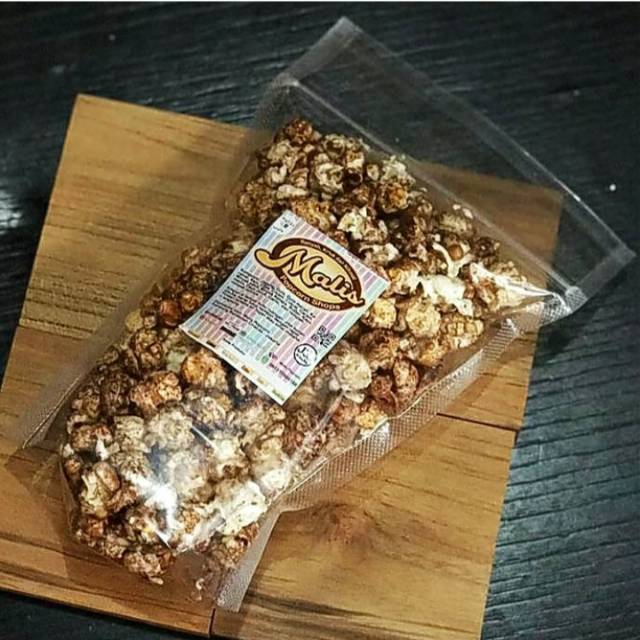 Malis Popcorn Caramel ini merupakan popcorn dengan kualitas bagus terbuat dari jagung popcorn Mushroom Jumbo dari Amerika yang diolah dengan resep Gold Medal. Malis popcorn Caramel diolah dengan minyak coconat oil Barco, perpaduan karamel dan sedikit salt membuat popcorn ini renyah dan nikmat tidak kalah dengan popcorn yang ada di bioskop atau popcorn lapis khas chicago amerika atau kentucky.