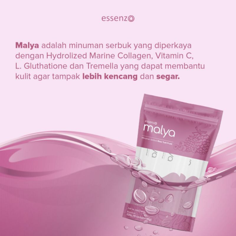 Malya merupakan mi uman serbuk yang diperkaya dengan Hydrolized Marine Collagen, Vitamin C, L.Gluthatione dan Tramelia yang dapat membantu kulit agar tampak lebih kencang dan segar.