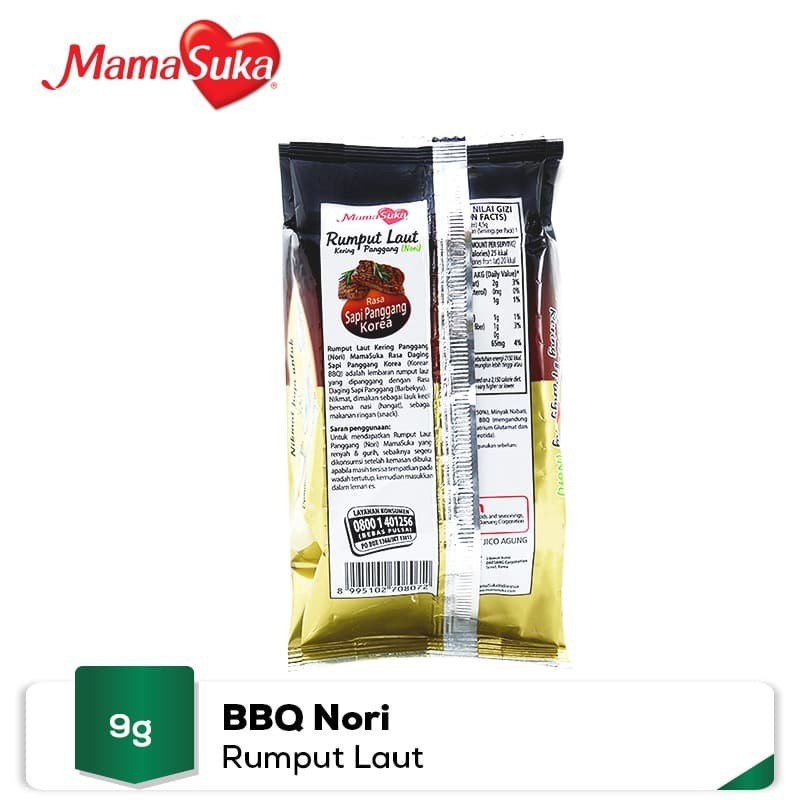 Mama Suka Rumput Laut Panggang Rasa BBQ 4.5 Gram X 2 Pcs Halal