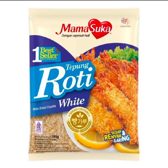Tepung Roti White MamaSuka terbuat dari tepung roti tawar dengan bahan terigu berkualitas tinggi yang diolah sedemikan rupa sehingga menghasilkan serpihan remah bagus, garing dan harum khas roti tawar. Sangat cocok untuk mebalur/melumuri aneka gorengan, udang, daging ayam filet, ikan, dan lainnya untuk menghasilkan gorengan dengan sensasi rasa khas.