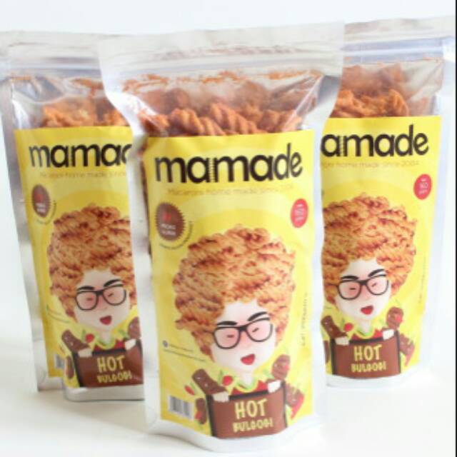 Mamade Makaroni berbahan baku Makaroni spiral atau fusilli yang terbuat dari Gandum dengan karbohidrat berserat tinggi, sangat baik untuk pencernaan.Mamade Makaroni menggunakan kemasan zipper, sehingga kemasan yang sudah dibuka bisa ditutup kembali dengan rapi, tetap kedap udara dan makaroni tahan lebih lama tanpa perlu dipindahkan ke toples.Mamade Makaroni digoreng menggunakan minyak goreng kemasan, bukan curah sehingga Makaroni terasa lebih crunchy dan tidak languTeknik menggoreng profesional, Makaroni tidak berasa seperti digoreng, minyak tidak menempel, benar-benar kering, garing dan empuk (tidak alot saat dimakan)Meskipun diolah secara tradisional, mamade Makaroni sudah terdaftar di Dinkes dan memiliki nomor PIRT, sehingga dijamin aman dikonsumsi oleh siapa saja. Tanpa pengawet dan pewarna buatanDengan 10 pilihan rasa, yang bisa disesuaikan dengan selera kamu:Balado (pedas manis, best seller)Bebek Asap (gurih asin)Kari Ayam (sedikit pedas, gurih)Jagung Bakar (manis, gurih)Keju (gurih, asin)Hot Original (pedas, asin)Oriental (pedas, manis)Ayam BawangBulgogi (Korean BBQ, gurih)Hot Bulggi (Pedas, Korean BBQ)Xtremee Hot (Sangat Pedas)