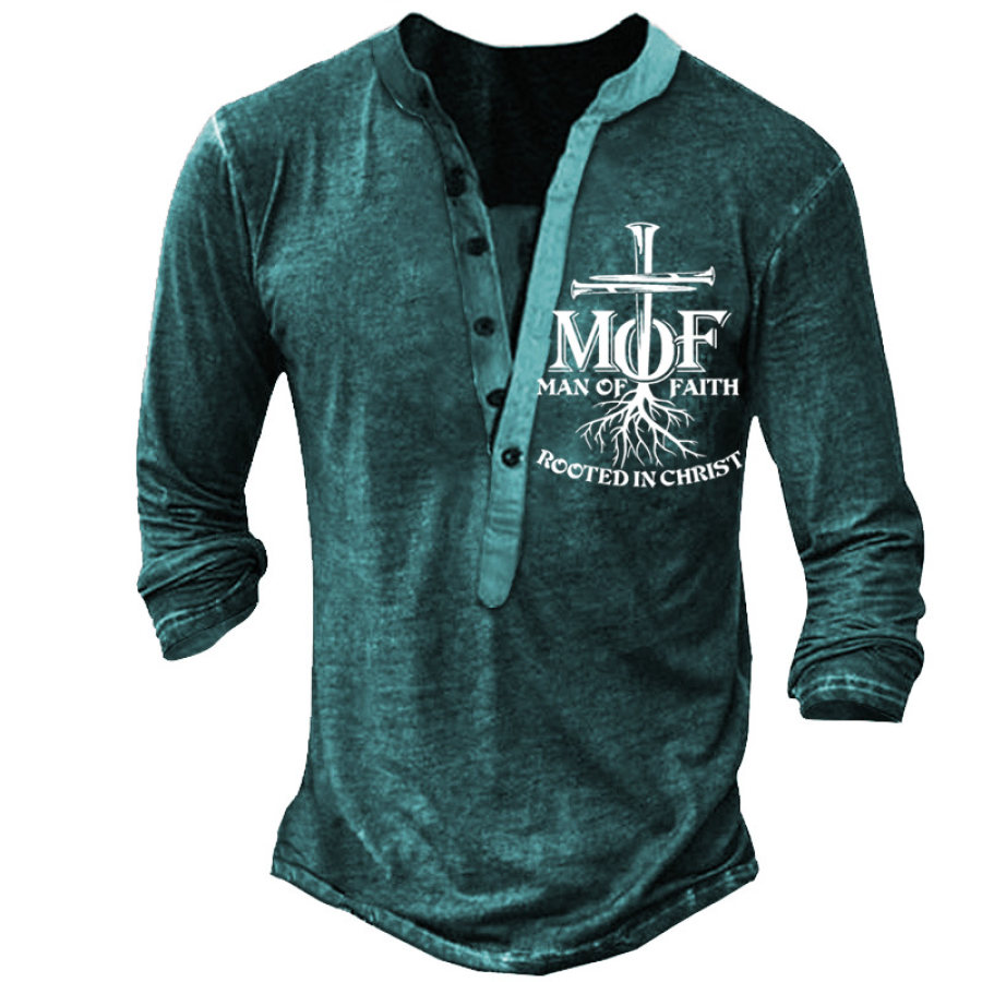 tees & shirts,man of rooted in christ men's henley t-shirt