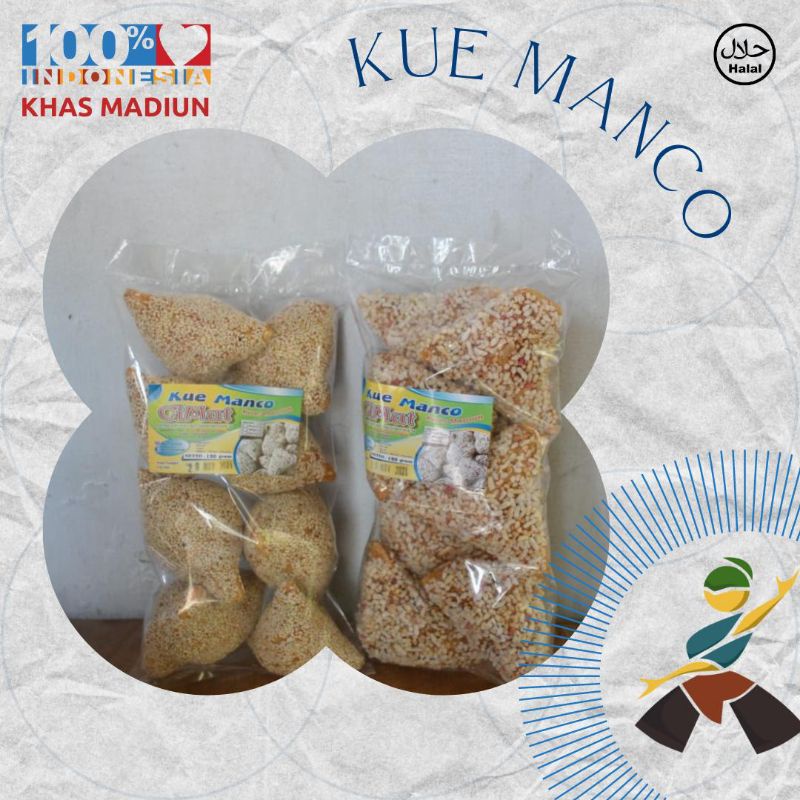 Kue Manco merupakan salah satu makanan khas Madiun yang terbuat dari tepung ketan tanpa bahan pengawet,pemanis buatan ataupun pewarna.