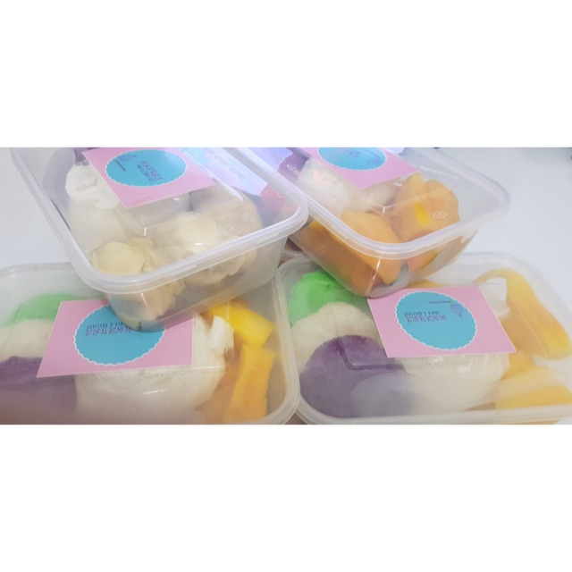 Disajikan dengan ketan hijau,,,putih dan Ungu