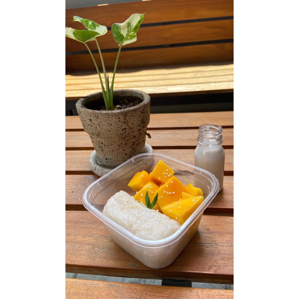 Mango Sticky Rice yang terbuat dari beras ketan, mangga, dan santan.