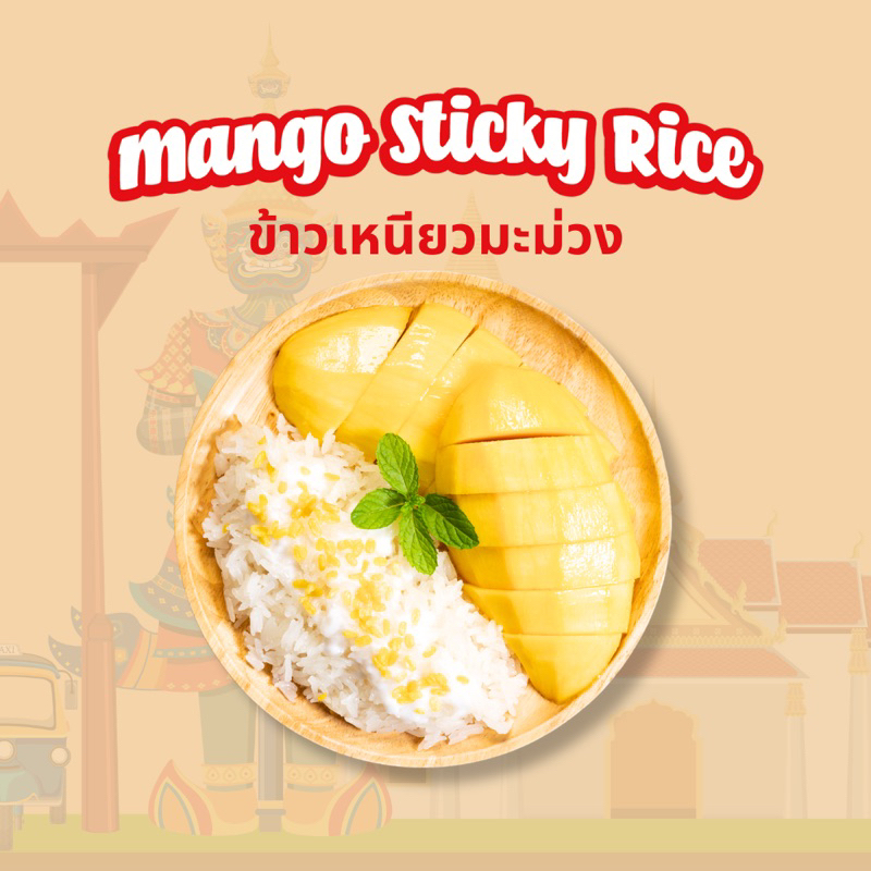 Mango Sticky Rice memiliki perpaduan rasa gurih dari campuran beras ketan dan santan, serta rasa manis dari buah mangga