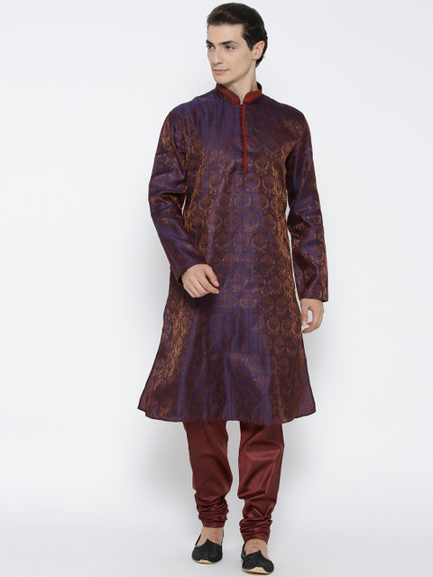 Manish Creations Men Blue & Maroon Self-Design Kurta with Pyjamas